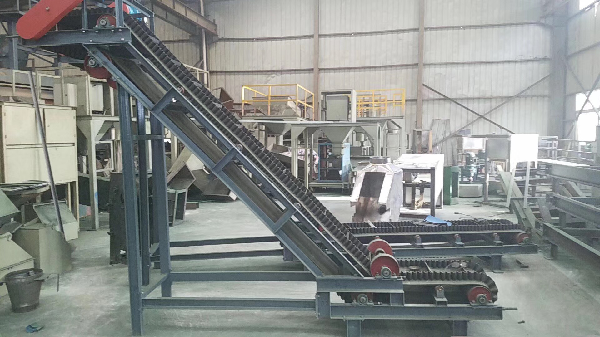 大傾角波狀擋邊帶式輸送機的結構、安裝和調整(大傾角波狀擋邊輸送機 標準) 大傾角波狀擋邊帶式輸送機的結構、安裝和調整 大傾角波狀擋邊帶式輸送機的結構、安裝以及調整,包括哪些內容?這是文章的主要內容。前面已經介紹了一些波狀擋邊帶式輸送機的知識,但那只是一個大概的淺述,而今天是具體詳細的概述,所以小編來帶領大家進行深入的了解,使大家對它有一個具體的概念和了解,下面就來具體展開。 1.大傾角皮帶輸送機的結構 主要由鋼結構件、滾筒組、托輥組、驅動裝置、壓帶裝置、拉緊裝置、清掃器及波狀擋邊膠帶等