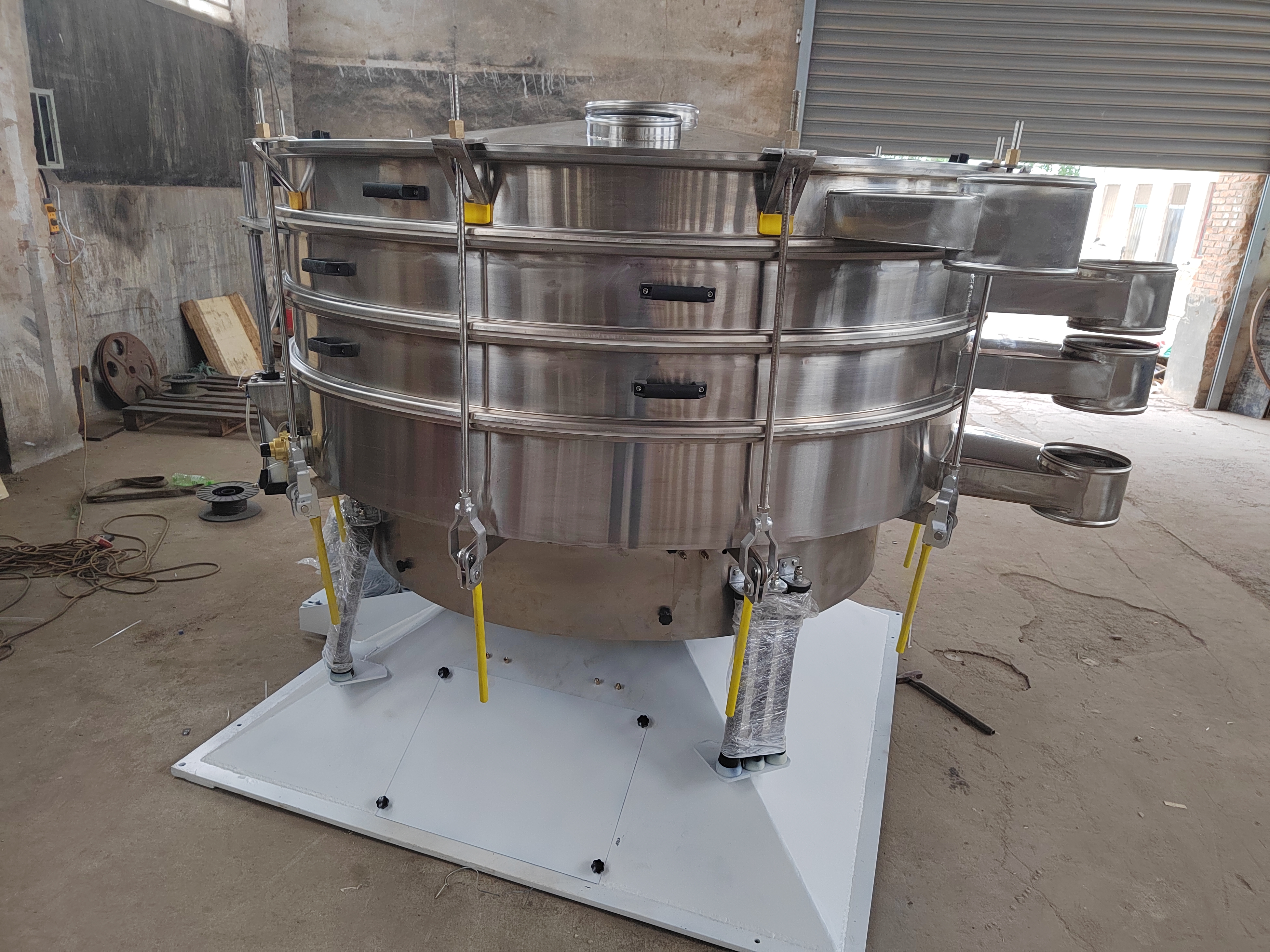 800型振動(dòng)篩普鋼跟不銹鋼差多少錢(qián)? 800型振動(dòng)篩普鋼跟不銹鋼差多少錢(qián)? 普鋼800型振動(dòng)篩即可單層粉末除雜、也可多層粒度分級(jí)、也可固液分離過(guò)濾使用,根據(jù)自己需要定制層數(shù)即可(可分層自由組合拆裝),是性?xún)r(jià)比高、一機(jī)多用的通用篩選設(shè)備。其噪音低、效率高,快速換網(wǎng)需3-5分鐘,全封閉結(jié)構(gòu),適用于粒、粉、粘液等物料的篩分和過(guò)濾。旋振篩是由直立式振動(dòng)電機(jī)做激振源,電機(jī)上、下兩端安裝有偏心重錘,將電機(jī)的旋轉(zhuǎn)運(yùn)動(dòng)轉(zhuǎn)變?yōu)樗健⒋怪薄A斜的三次元運(yùn)動(dòng),再通過(guò)彈簧的減震助振作用把這個(gè)三次元運(yùn)動(dòng)傳遞給篩面,
