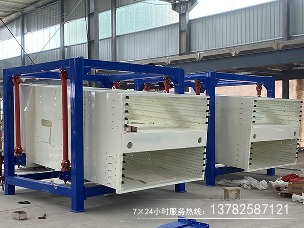 由四個支柱和兩個槽鋼組成,支持著篩箱,安裝時支柱必須垂直與地面,兩支柱下面的槽鋼應(yīng)相互平行。 直線振動篩是對板栗進(jìn)行大小分級,采用聚氨酯材質(zhì)的篩板來篩分可以不損害板栗外殼,一個小時可以達(dá)到幾噸的產(chǎn)量