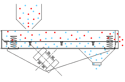 利用振動電機激振作為振動源,使物料在篩面上呈跳躍式直線向前運動,物料從給料機均勻地進入篩分機的進料口,通過多層篩網產生數種規格的篩上物、篩下物、分別從各自的出口排出。